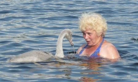Она держалась рядом с кордоном и, завидев знакомых людей, подплывала
